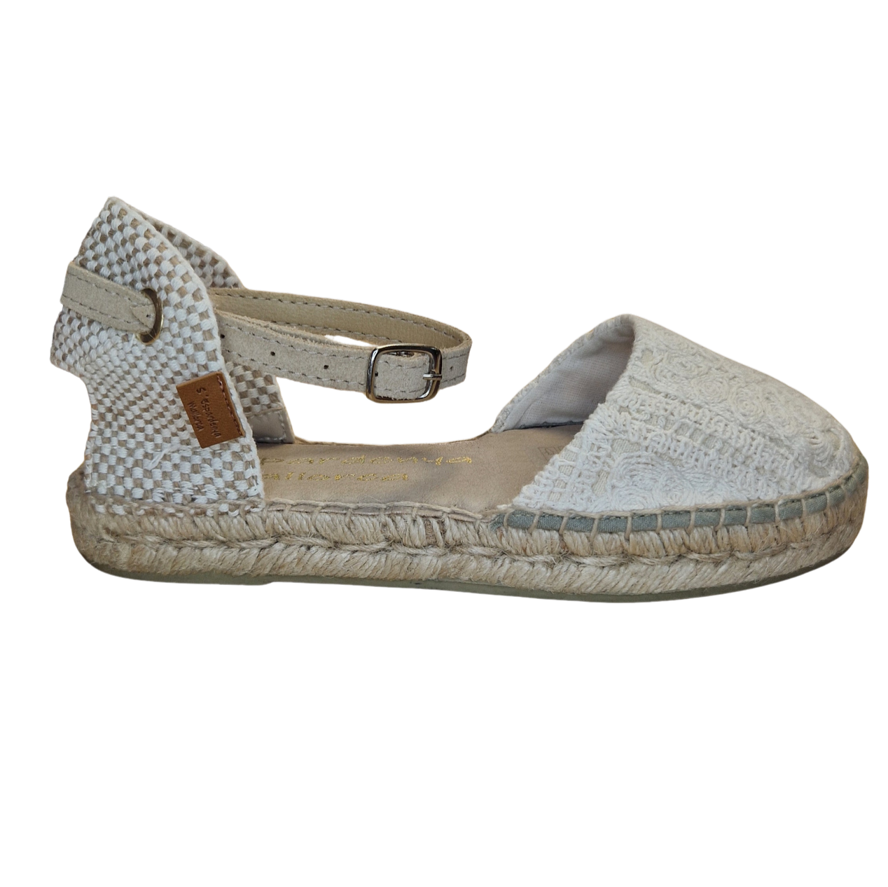 - Material de la suela: 100 % yute natural con una fina capa de caucho natural.