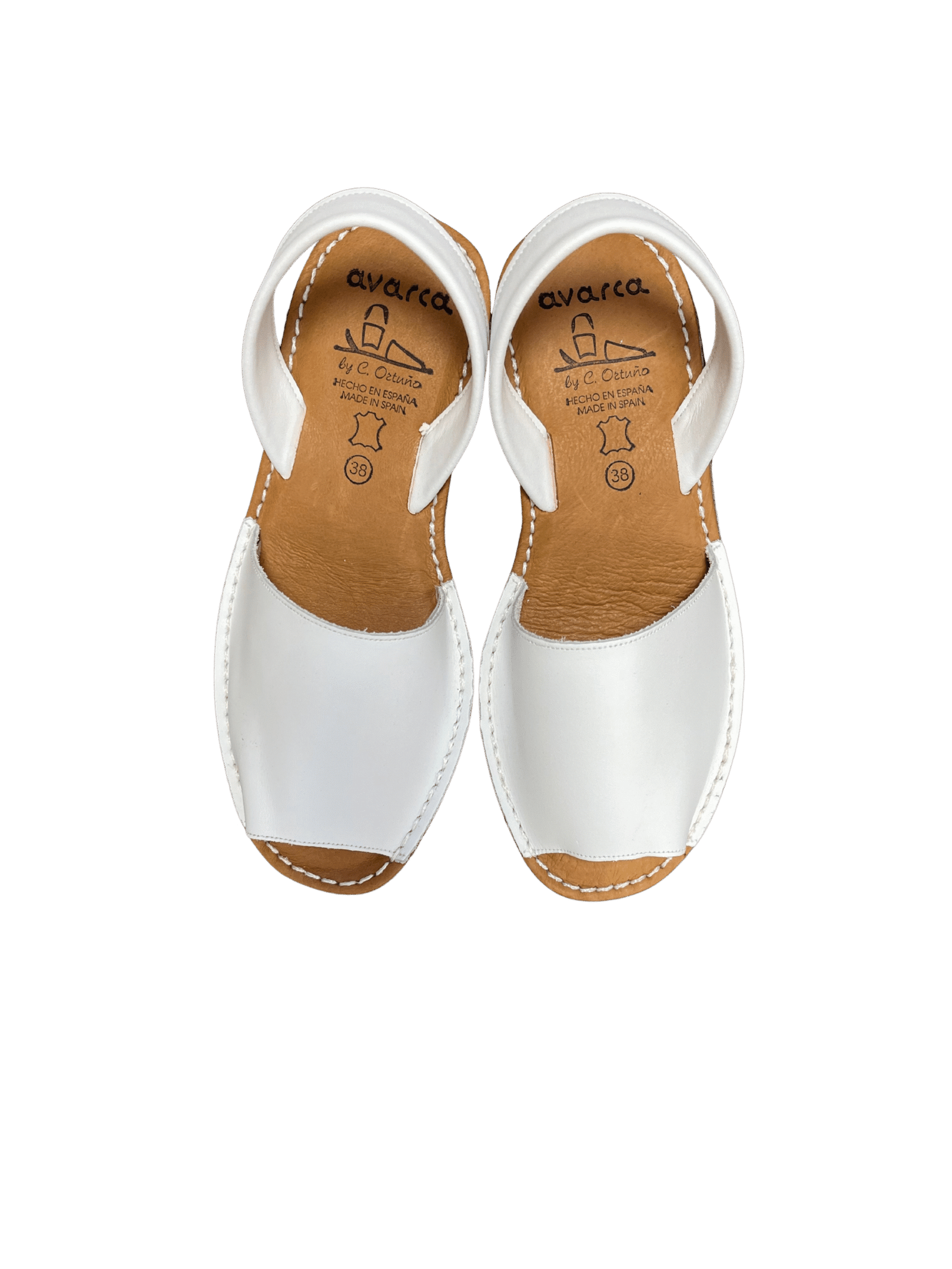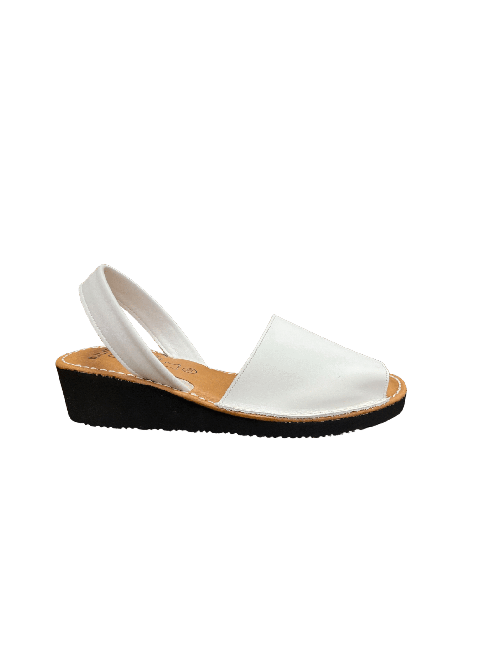 Avarcas menorquinas artesanales de piel de color blanco con cuña baja para mujer.