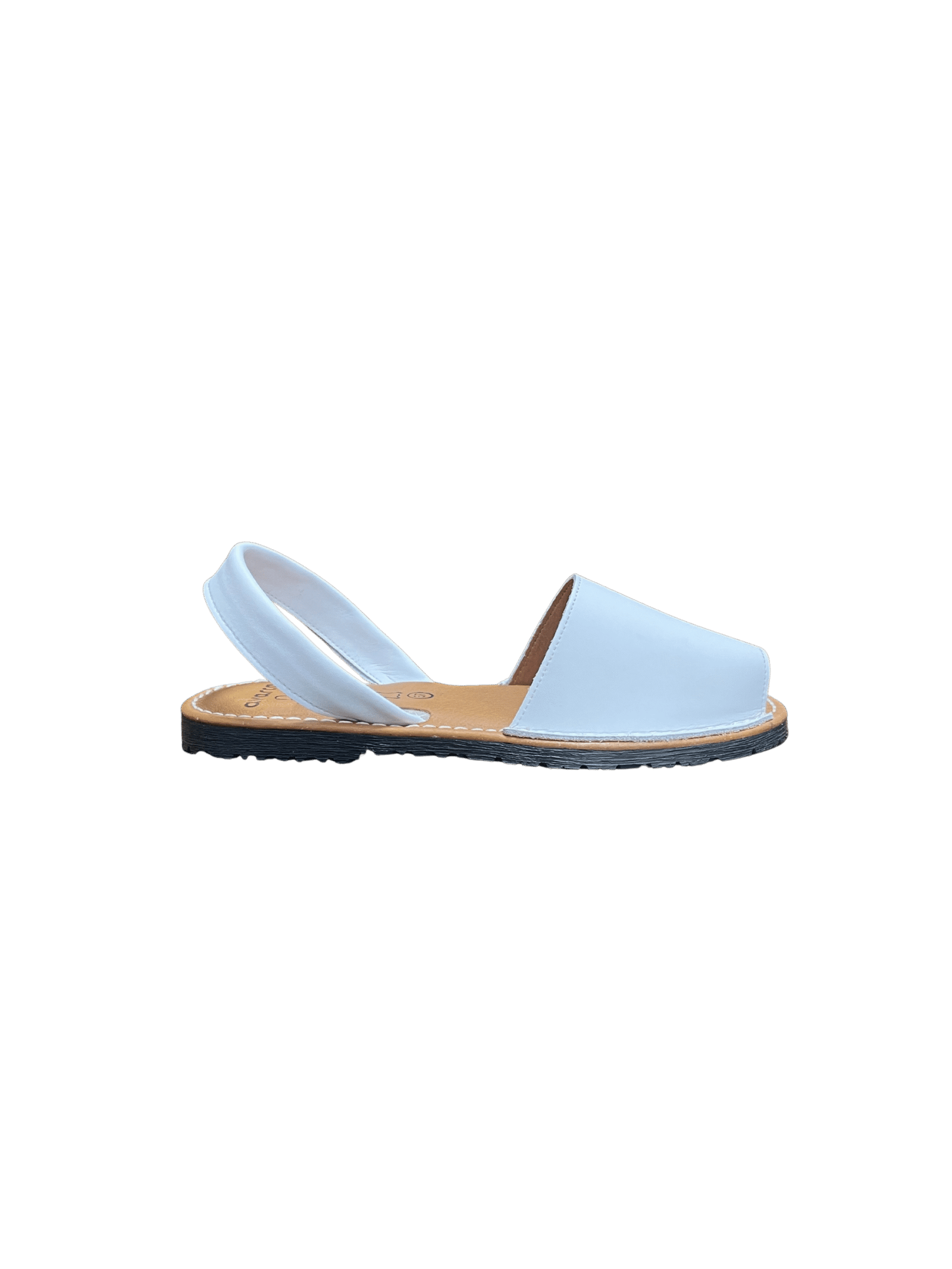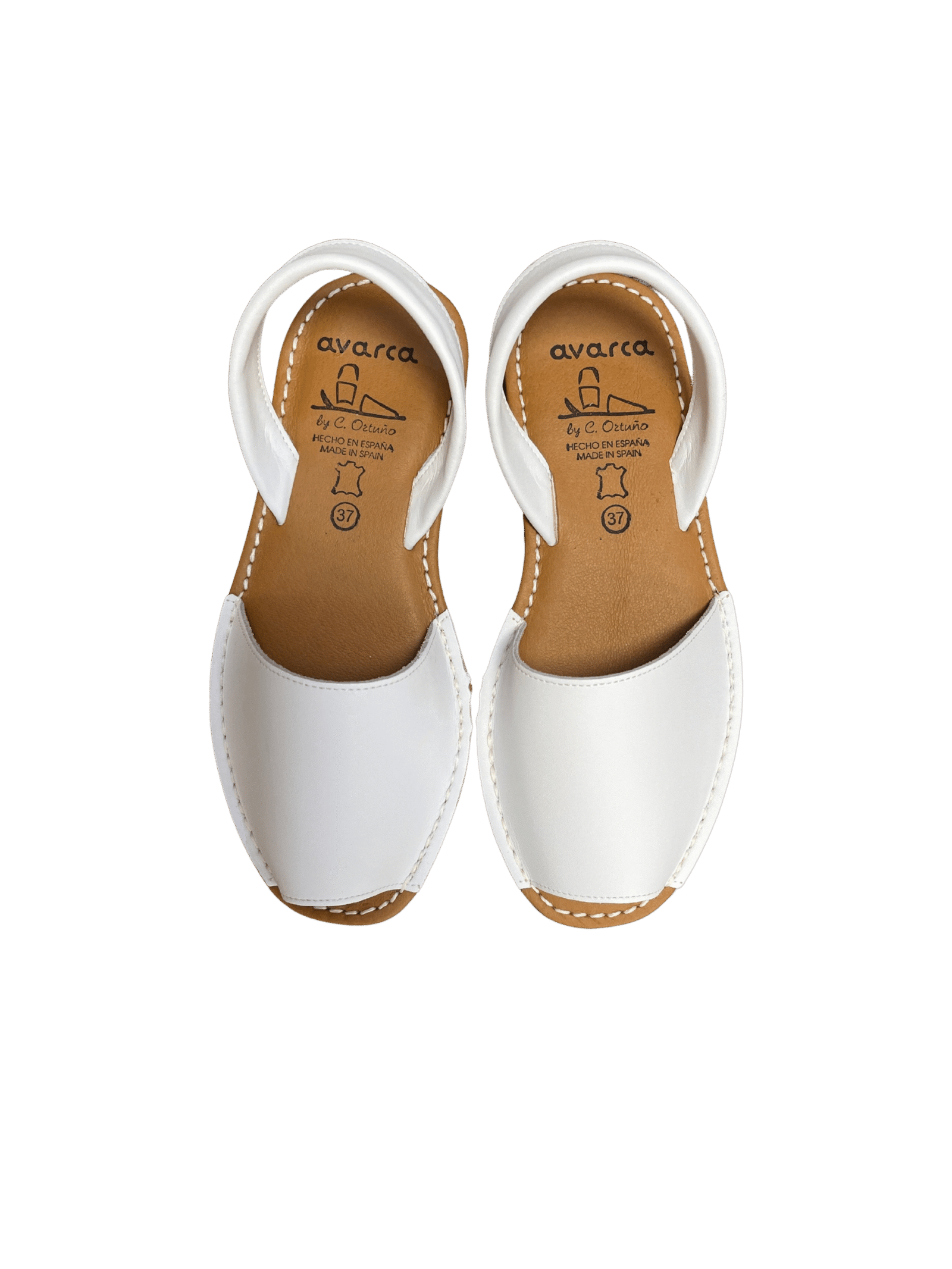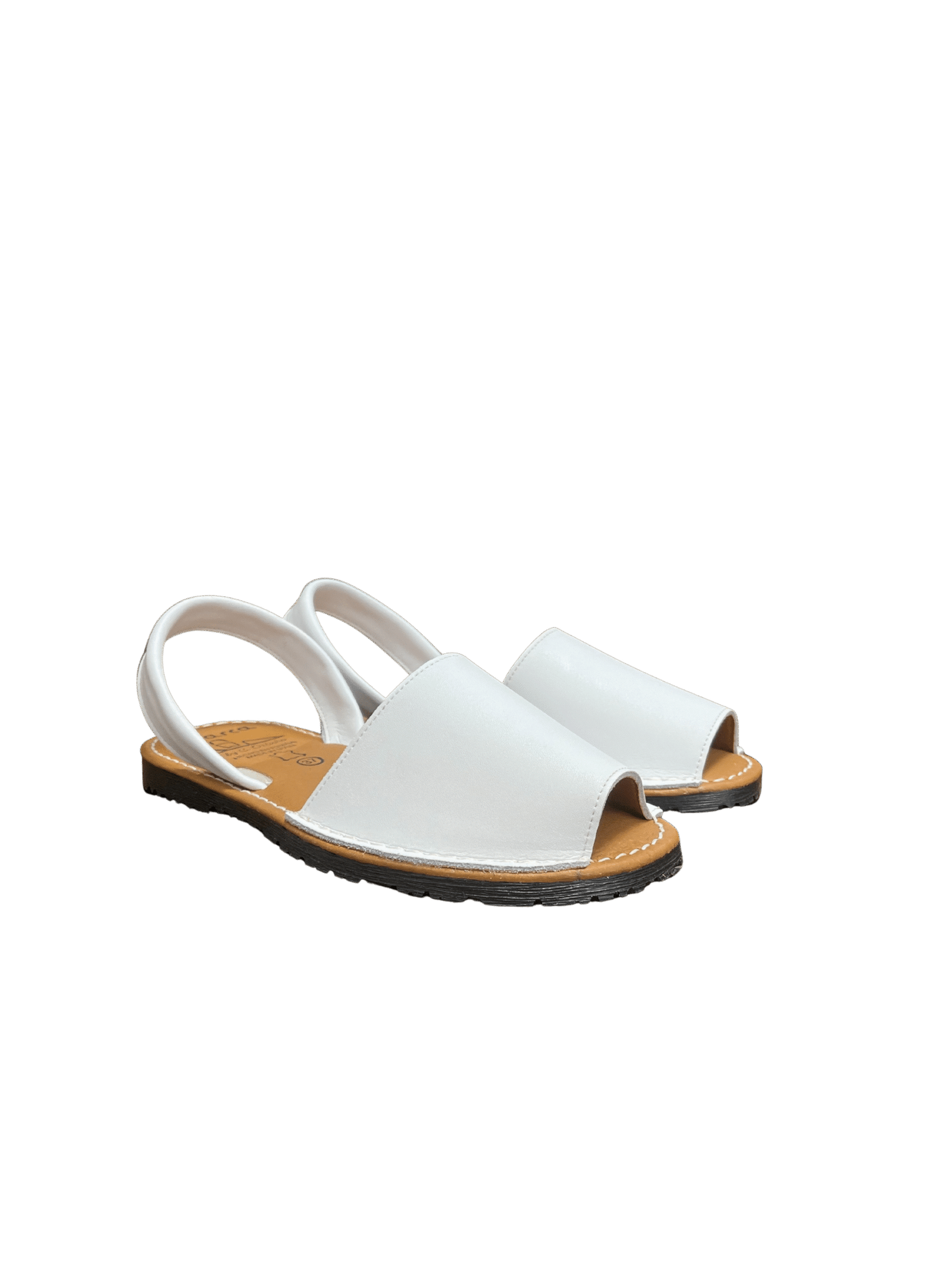 Avarcas menorquinas artesanales con piel napa en color blanco para mujer y hombre.